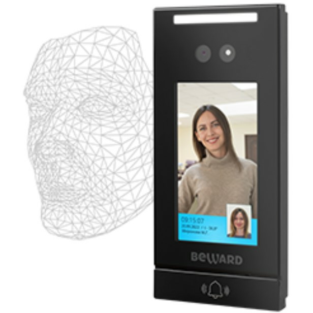 Диагональ экрана    5" Сенсор    2 сенсора 2 Мп, КМОП 1/2.8" SONY Starvis Чувствительность    0.01 лк (день) / 0.001 лк (ночь) Соотношение сигнал/шум    Более 50 дБ Объектив    6 мм Шумоподавление    3D DNR Управление скоростью затвора    Автоматически Звуки    Встроенный динамик,  звуковое сопровождение подтверждения доступа Режимы прохода    Лицо, карта, маска, различные комбинации указанных режимов Распознавание лиц Дальность распознавания    До 2 метров Допустимый угол наклона лица    Не более 30° Время распознавания    Не более 0.5 с Ёмкость журнала    50 000 событий (встроенная память) Ёмкость базы лиц    24 000 лиц Интерфейсы Управление дверью    1 выход тревоги (трёхконтактное реле) Сетевой интерфейс    1 RJ-45 10BASE-T/100BASE-TX Wiegand    Встроенный считыватель Mifare 13,56 MHz Wiegand-26/34      Wiegand-26/34 выход      Отправка кода карты при распознавании лица SIP-вызов    Встроенная сенсорная кнопка SIP-вызова Дополнительные входы    Кнопка входа, датчик двери Датчик вскрытия корпуса    Да Видео Формат сжатия    H.265, H.264 BP/MP/HP, MJPEG Видеопоток    Двойное кодирование Разрешение    Основной поток: 1920x1080, 1280x720      Альтернативный поток: 960x544, 640x360 Скорость кадров    До 25 к/с для всех разрешений Скорость передачи    От 30 кбит/с до 16 Мбит/с Параметры изображения    Яркость, контрастность, насыщенность, оттенок, резкость, баланс белого, АРУ, выдержка, BLC Подсветка Тип подсветки    ИК для работы камеры детекции живых лиц      White LED для работы камеры распознавания лиц Управление    Автоматически вкл./выкл. Сеть Сетевые протоколы    TCP/IP, UDP, RTP, RTSP, RTCP, HTTP, HTTPS, DNS, DDNS, DHCP, SMTP, UPNP, MQTT, SIP Безопасность    Доступ пользователей с защитой паролем Интеграция    CGI API Эксплуатация Питание    12 В (DC) Потребляемая мощность    Не более 10 Вт Рабочий диапазон температур    От -30° до +60°С Класс защиты    IP54 Материал корпуса    Акрил, Пластик Размеры (шхвхг)    95x205x24,5 мм Вес    0,8 кг Цвет    Чёрный Управление    Web интерфейс, CGI API Монтаж    Настенное крепление Комплектация Комплект поставки    IP-терминал         Разъем питания DC12V гнездо      Интерфейсный кабель      Комплект крепежа на стену      Упаковочная тара Внимание! Источник питания в комплект поставки не входит и приобретается отдельно.