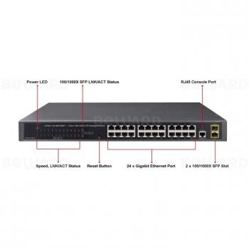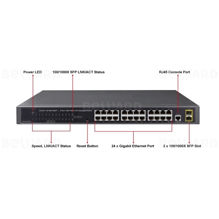 - Интерфейсы 24 порта 10/100/1000BASE-T RJ45 auto MDI/MDI-X 2 порта 100/1000BASE-X SFP (dual-mode)