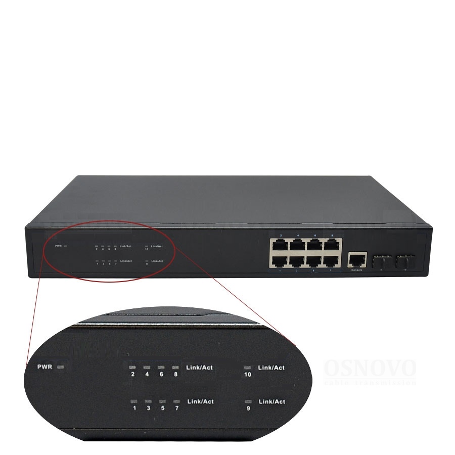 - Порты: 8 x GE (10/100/1000Base-T) 2 x GE (SFP 1000Base-X) Консольный порт